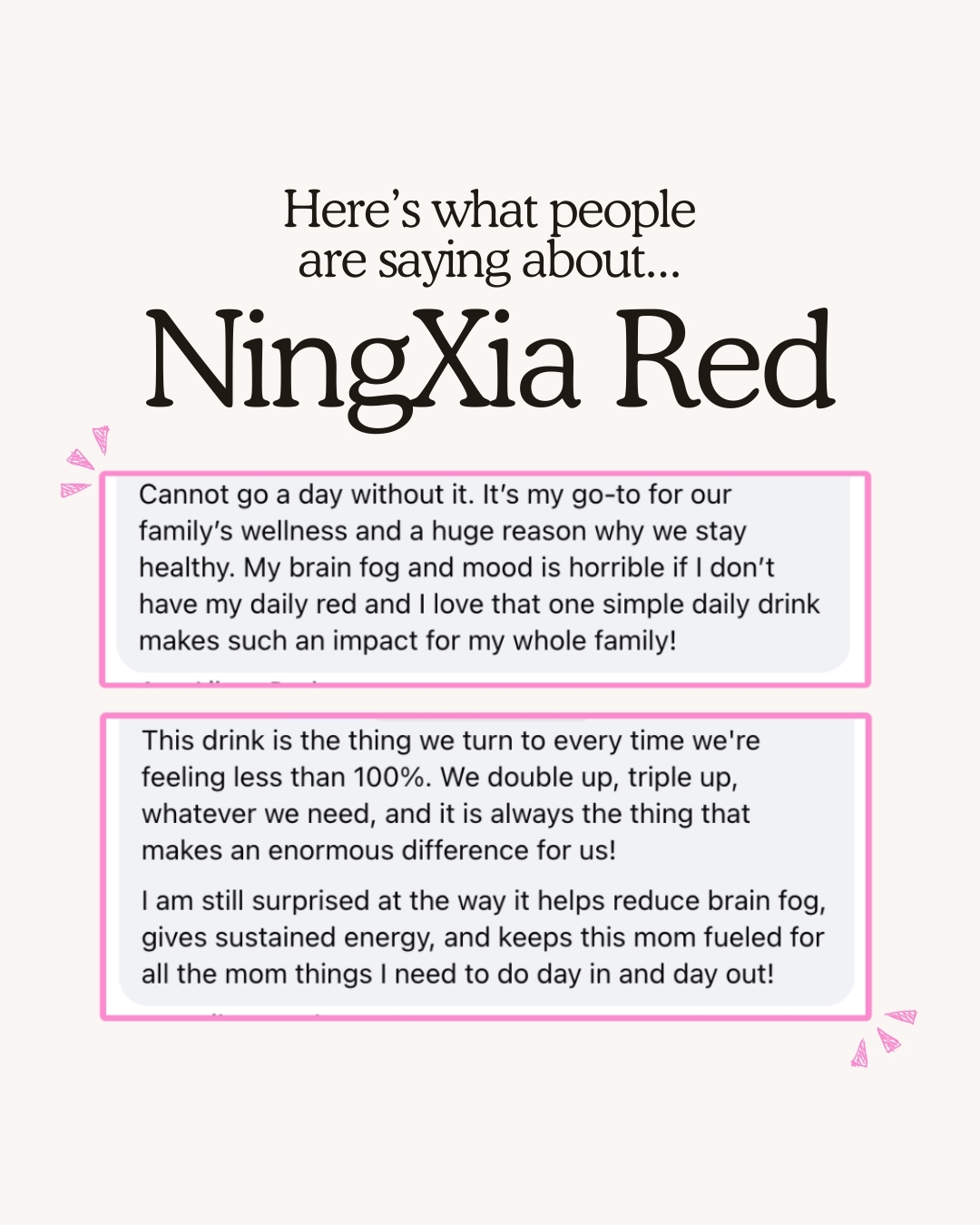 • I drink it daily for immune support. It also gives me energy while pregnant & helps combat pregnancy brain. I have a picky eater & I love sneaking Ningxia into his water everyday — helps me know he's getting more nutrients. Ningxia is so worth the hype. - Jackie S.