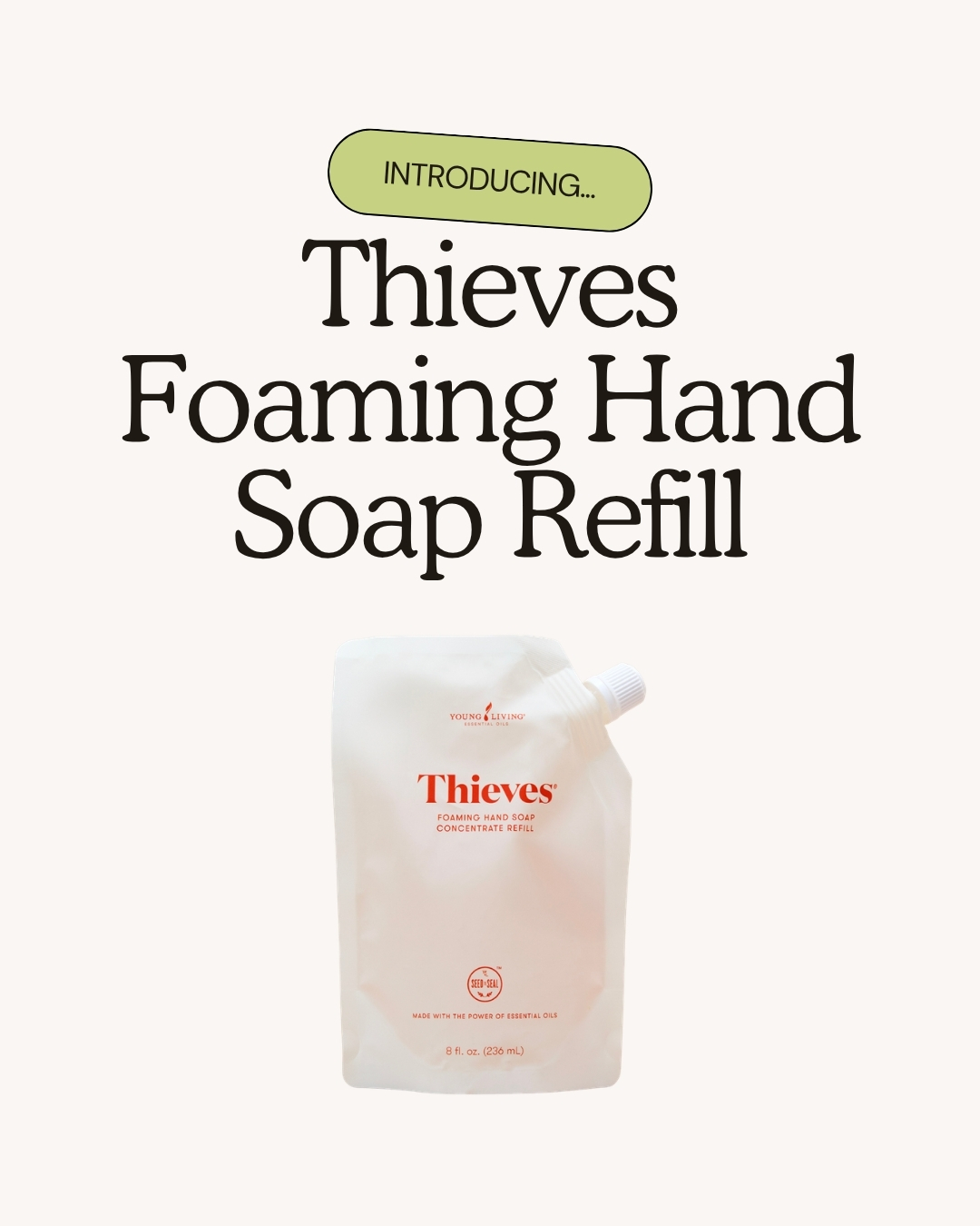 Thieves Foaming Hand Soap Concentrate Refill delivers the same gentle, plant-powered clean and Thieves-scented formula you know and love, reimagined with less cost and less waste.